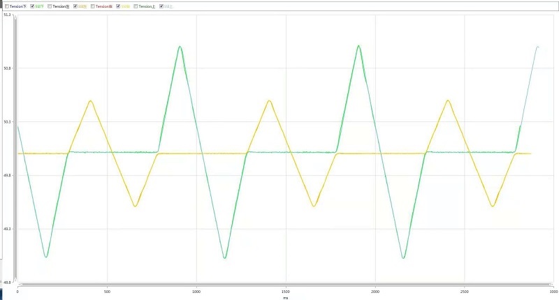 1)该设备试验分为两类,一类为按位移加载,设定位移的频率、振幅和波形使作动器做动;另一类为按载荷加载,设置载荷加载的频率、振幅和波形,可分别设置4台作动器的频率、振幅和波形,可在行程内任意给定位置驻停;控制系统可根据输出数据自行生成曲线,来控制作动器进行加载,也可直接输入外部曲线。